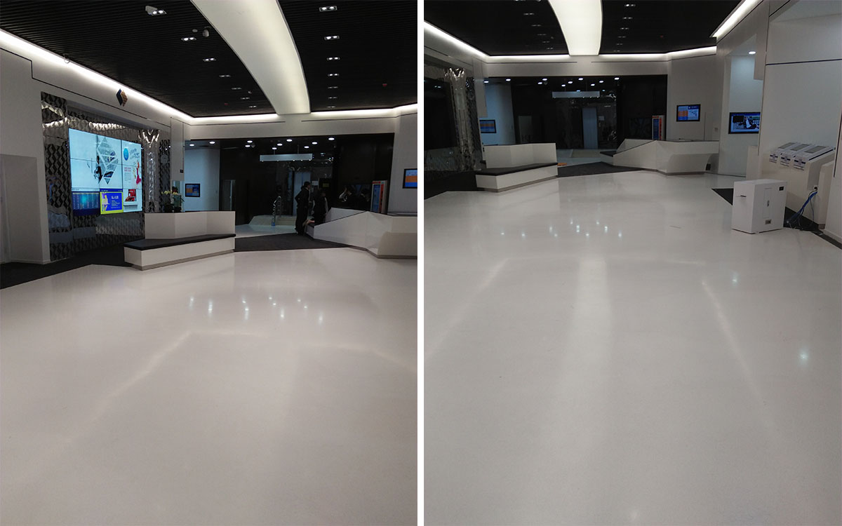 這種筆直的粗線條就像恒豐的標(biāo)志映射在整個(gè)空間內(nèi)。大面積白色金磨石地面所對應(yīng)的頂面使用了大量的白色射燈,強(qiáng)烈的燈光映射在光亮、平整潔白的地面顯得特別的明亮、大氣!