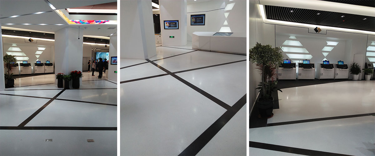 恒豐銀行地面以白色金磨石為主打色,以黑色線條點(diǎn)綴分隔空間。